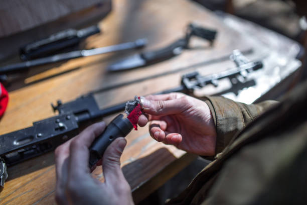 Field stripping of the firearm (disassembling key parts).